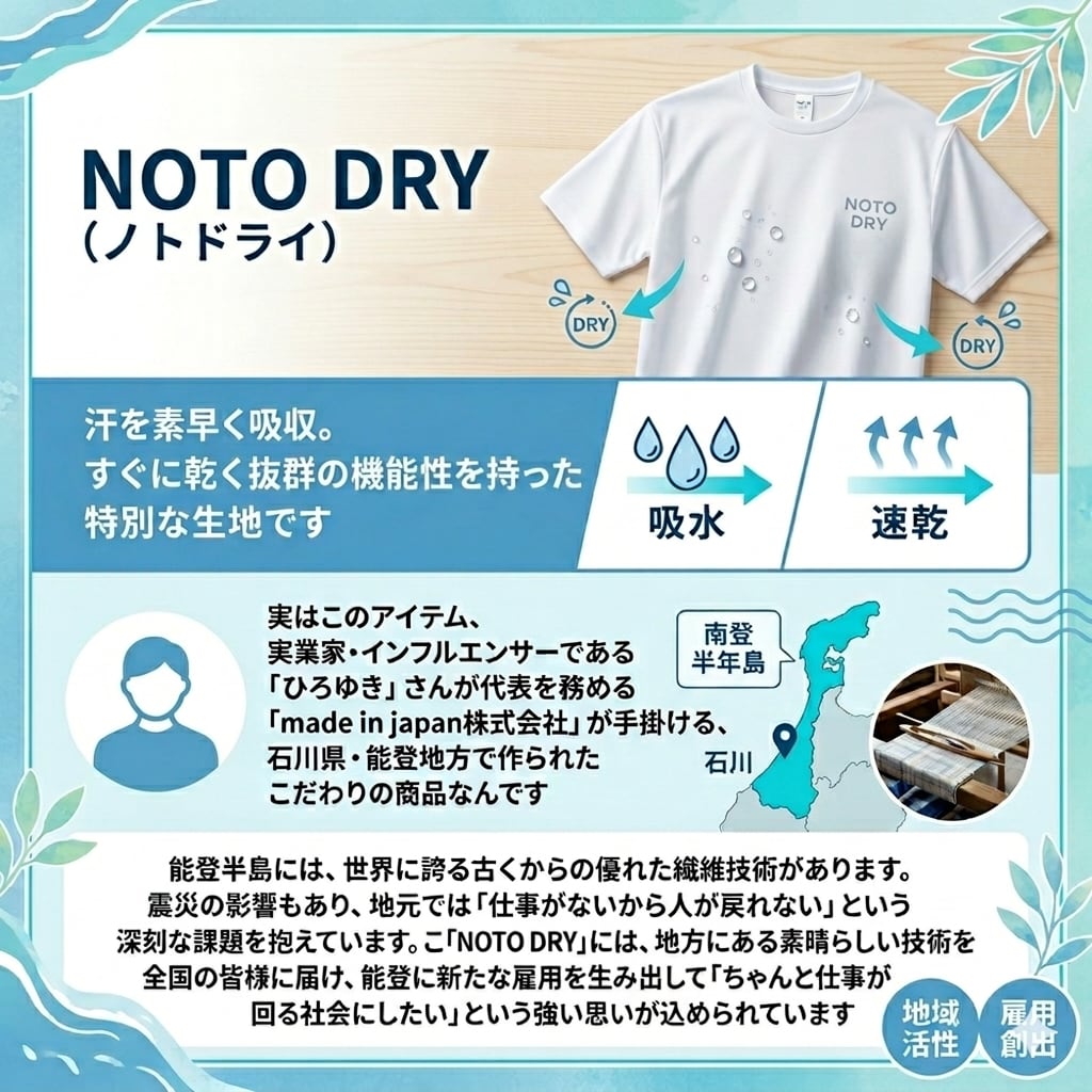 デザインと機能性を両立した「NOTO DRY Tシャツ」